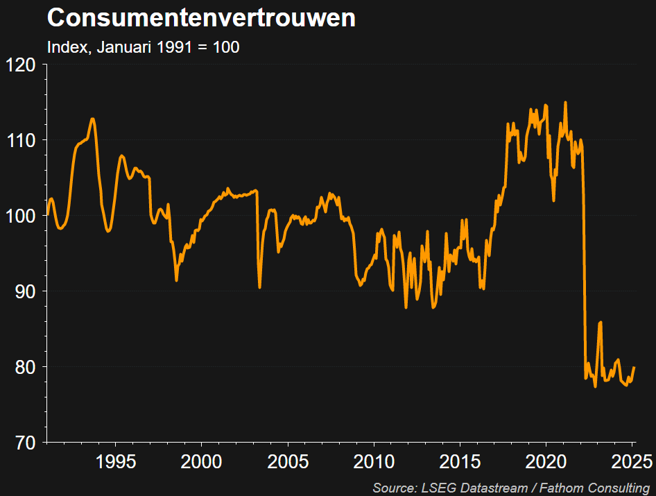 - Het consumentenvertrouwen staat in Europa weer onder druk, onlogisch door de grote onzekerheid m.b.t. de handelsoorlog.