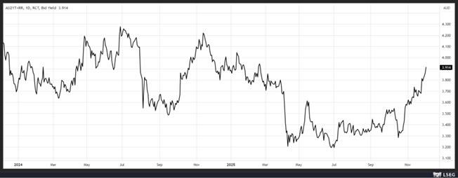 Avec une inflation en hausse, la position de la Banque centrale pourrait bien changer, et cela se reflète dans la hausse assez sensible du rendement de l’obligation australienne à 2 ans.