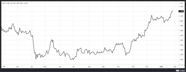 Avec un taux central à 3,6 %, la Banque centrale australienne avait déjà averti que le cycle d’assouplissement arrivait à son terme, mais ce chiffre d’inflation a accentué les anticipations d’une hausse des taux plus rapidement que prévu, sans pour autant que cela ouvre la voie à un cycle haussier continu.