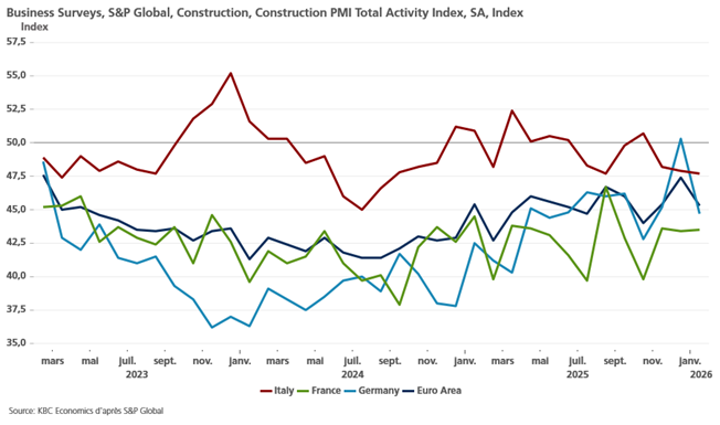 Les trois pays ont enregistré une baisse de l’activité, avec une forte contraction en Allemagne, et touchant tous les secteurs de la construction.