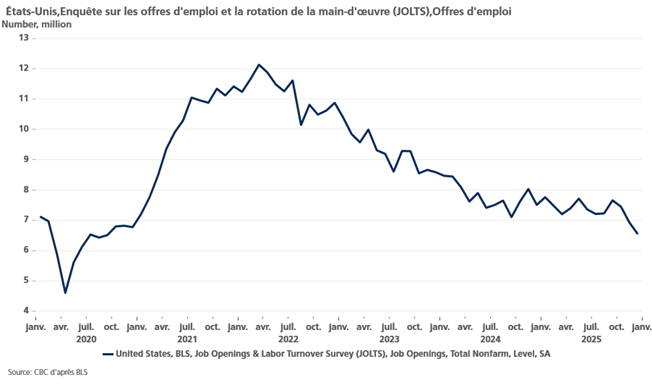 Selon ce dernier, les offres de main-d’œuvre ont diminué de 386 000 pour atteindre 6,542 millions au dernier jour de décembre, le niveau le plus bas depuis septembre 2020.