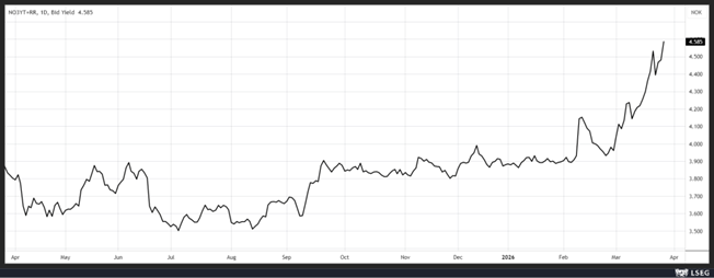 Dans cette situation, qui semble gelée pour le moment, avec des discussions peut-être, mais un conflit qui perdure, le prix du baril se maintient au-dessus des 100 $, ce qui pousse encore un peu plus haut les rendements obligataires.