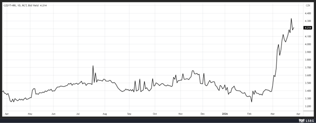 Le taux tchèque à 2 ans intègre dès lors aussi des hausses de taux en se basant sur ces minutes qui relèvent que « le gouverneur Ales Michl a déclaré qu’il était nécessaire de maintenir une politique monétaire stricte et de ne pas sous-estimer le choc des coûts. Une politique de prudence s’impose. S’il y avait un risque d’augmentation de l’inflation de base, le Conseil serait prêt à resserrer la politique monétaire ».