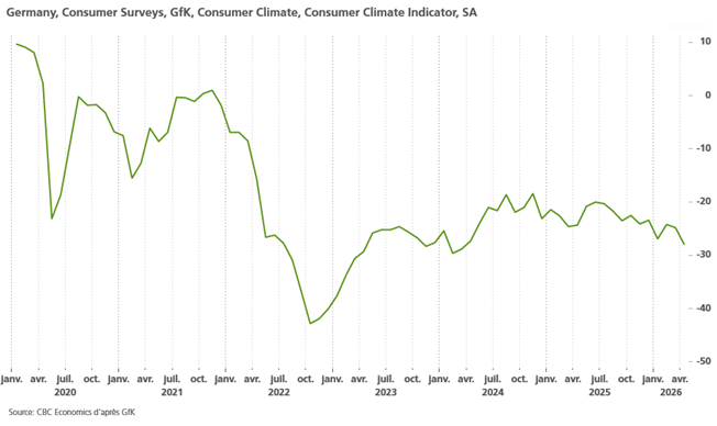 Même constat en Grande-Bretagne, où l’indice de confiance des consommateurs de GfK est tombé en mars à son plus bas niveau depuis près d’un an.
