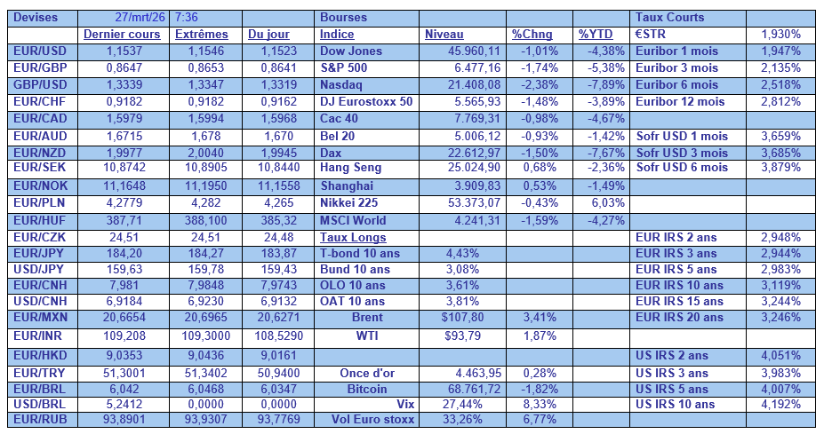 Le conflit sape le moral des entreprises et des ménages, et ce n’est pas près de s’estomper étant donné que Trump a reporté son ultimatum au 6 avril, ce qui nous promet encore de beaux mouvements de yo-yo sur les marchés financiers.