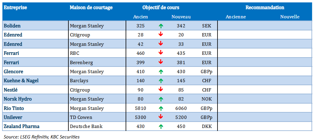 Dans le top 10 aujourd'hui : KBC Groep, ArgenX, Aedifica, KBC Ancora, Umicore, Ageas, Aperam, Sofina, Groep Bruss. Lambert et UCB.