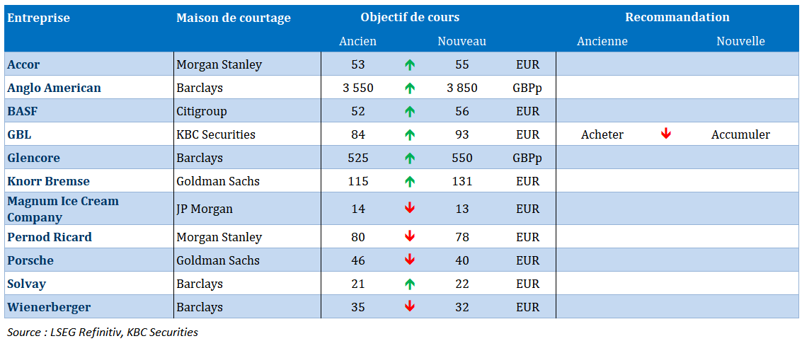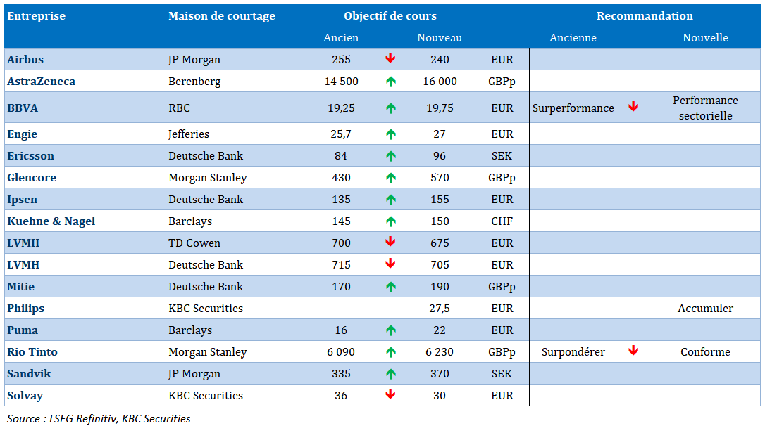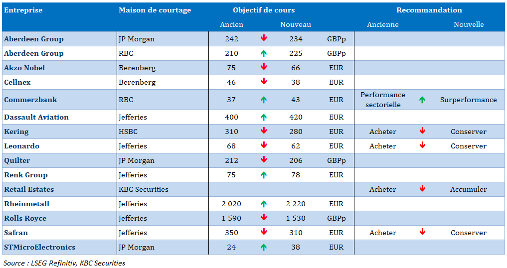 Nouvelles recommandations pour les actions