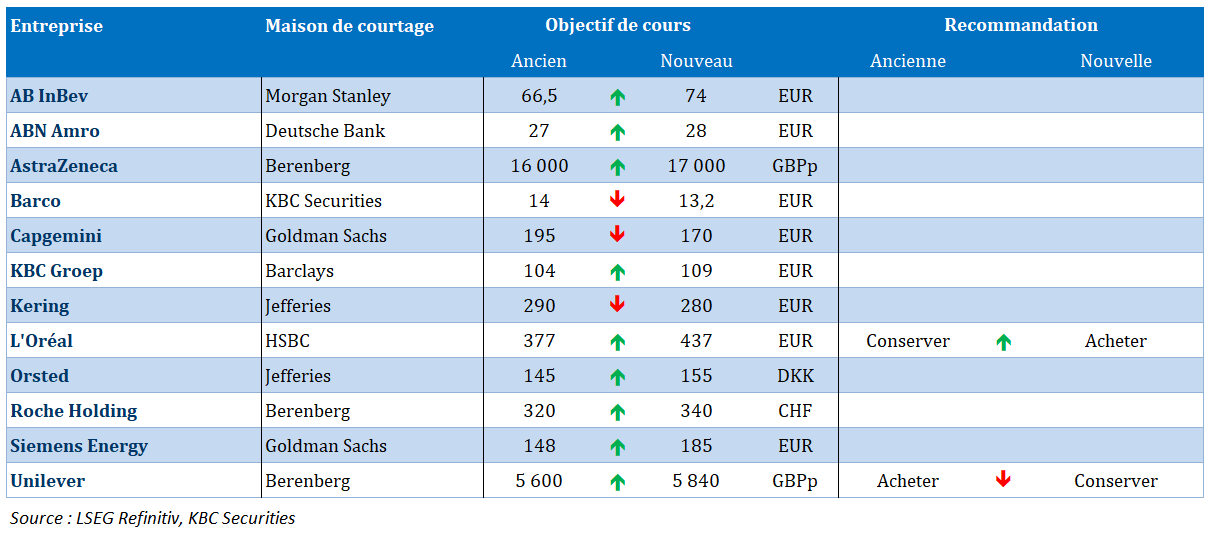 - KBC Securities revoit l'objectif de cours de Barco à la baisse.