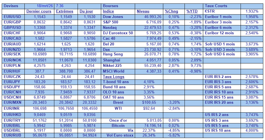 La BOJ, qui se réunit demain et jeudi, devrait laisser ses taux inchangés, mais la hausse du prix du baril représente un énorme risque pour l’économie, alors que le Japon tire environ 95 % de son pétrole du Moyen-Orient, et près de 90 % de ces approvisionnements transitent par le détroit d’Ormuz, mais aussi un risque inflationniste.