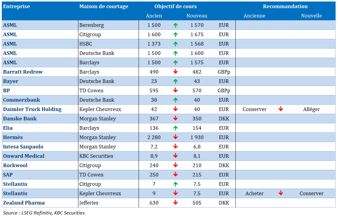 Dans le top 10 aujourd'hui : ASML, Hermès International, UCB, Argenx, KBC, LVMH, Adyen, Lotus Bakeries, Ageas, Inventiva.