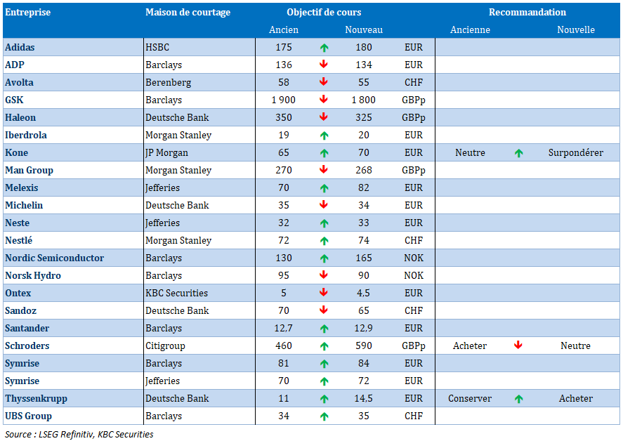 - KBC Securities revoit à la baisse l'objectif de cours d'Ontex.