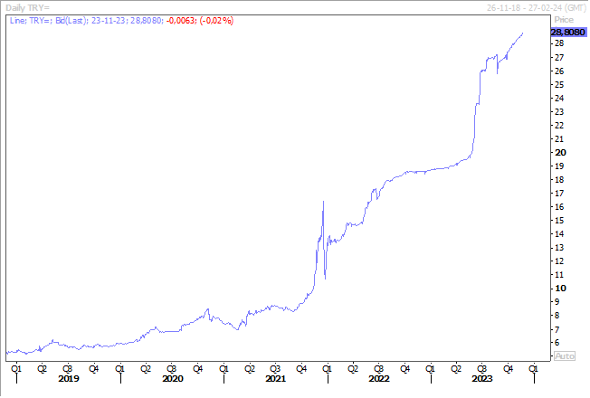 La Banque centrale de Turquie devrait, et elle sera bien le dernier des Mohicans, encore augmenter ses taux de 2,5 % aujourd’hui pour les porter à 37,5 %, mais elle n’en a pas encore fini avec les hausses de taux.