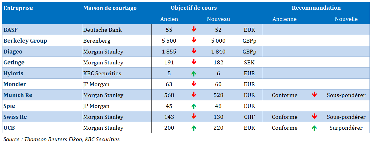 Source : Bernard Keppenne, Chief Economist - CBC Banque & Assurances