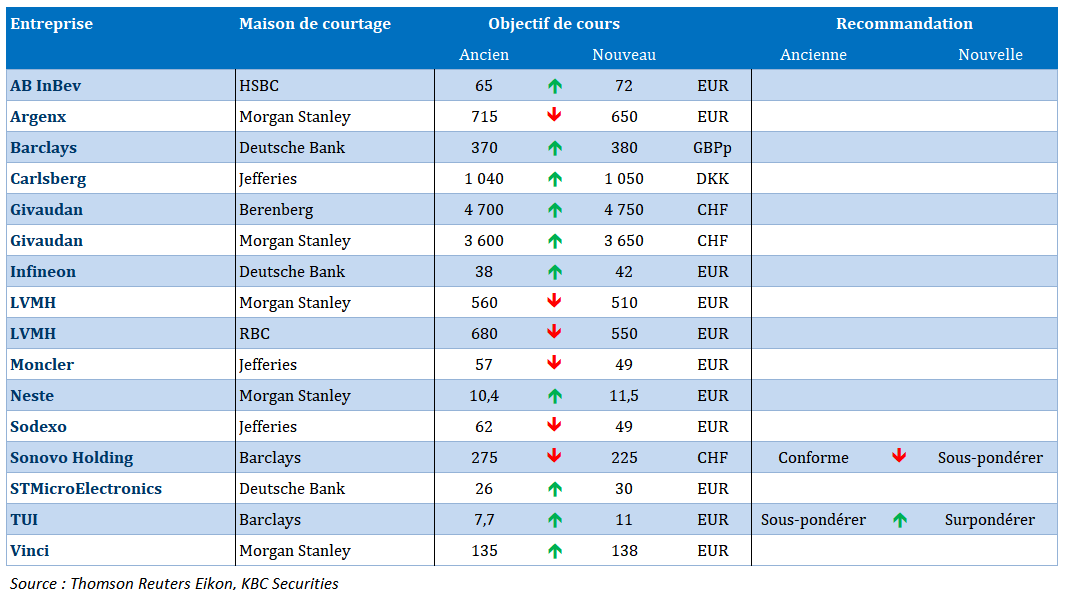 Dans le top 10 aujourd'hui : Proximus, Melexis, Umicore, Cofinimmo, Prosus, Tinc, Ackermans & van Haaren, The Blockchain Group, Eutelsat Communications, Argen-x.