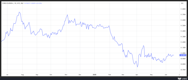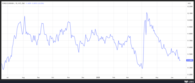 A propos de couronne, la couronne norvégienne s’est également appréciée assez sensiblement par rapport à l’euro depuis le début de l’année, mais par contre la Banque centrale norvégienne, qui se réunit demain, devrait laisser ses taux inchangés à 4,50%.