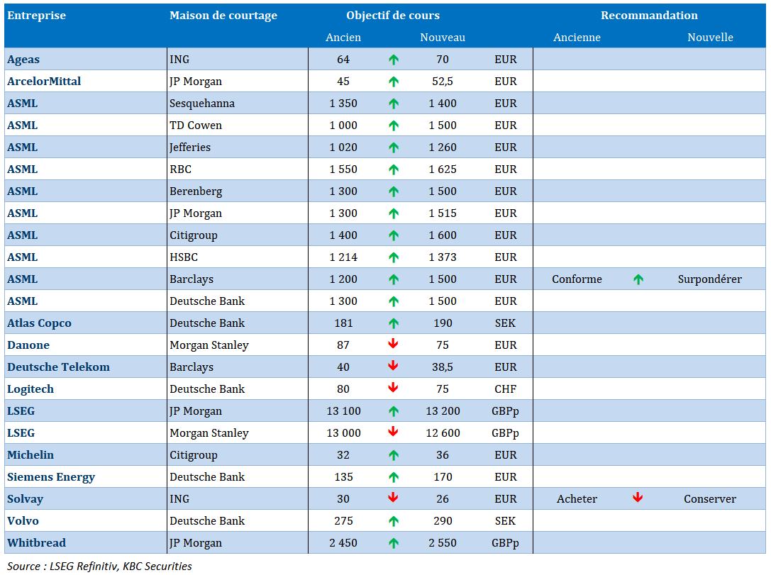 Dans le top 10 aujourd'hui : KBC Ancora, STMicroelectronics, ASML, Lotus Bakeries, Argenx, D'Ieteren Group, Umicore, DEME, AB InBev, Solvay.