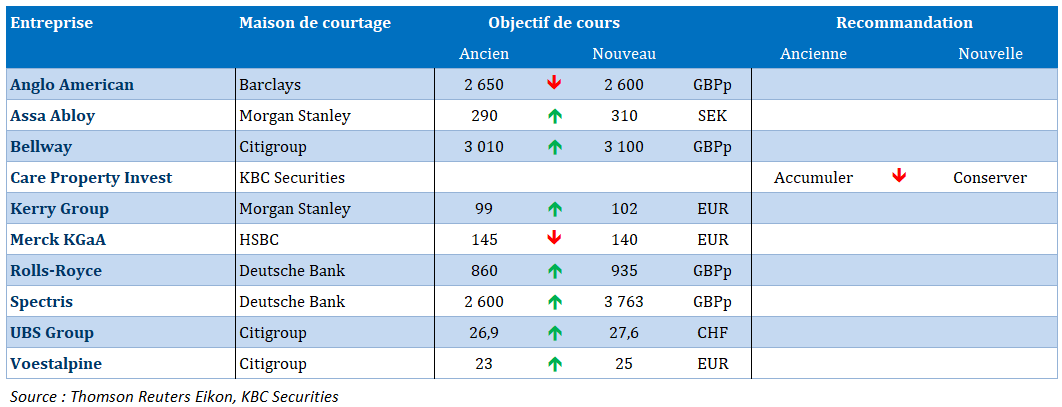 Source : Bernard Keppenne, Chief Economist - CBC Banque & Assurances