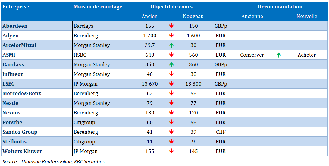 Dans le top 10 aujourd'hui : Cofinimmo, Colruyt, Aedifica, Lotus Bakeries, Care Property Invest, ASML, BAM Groep, Sofina, WDP, ING.