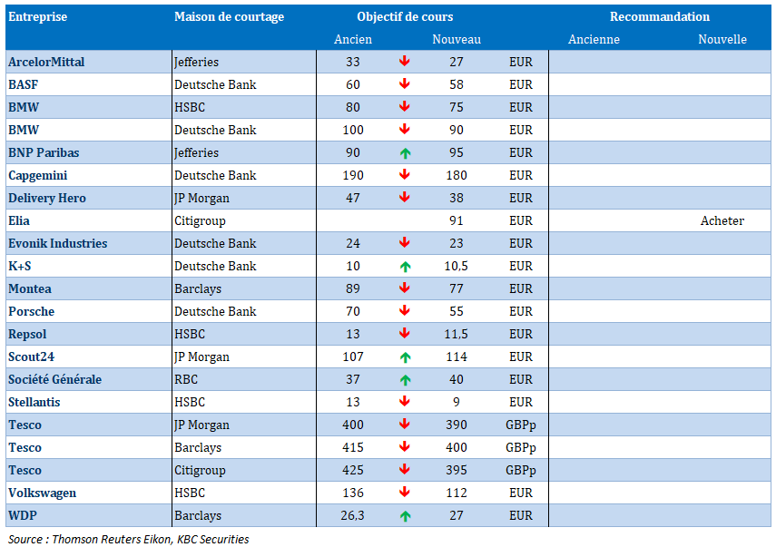 Source : Bernard Keppenne, Chief Economist - CBC Banque & Assurances