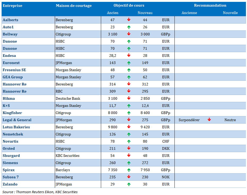 Source : Bernard Keppenne, Chief Economist - CBC Banque & Assurances