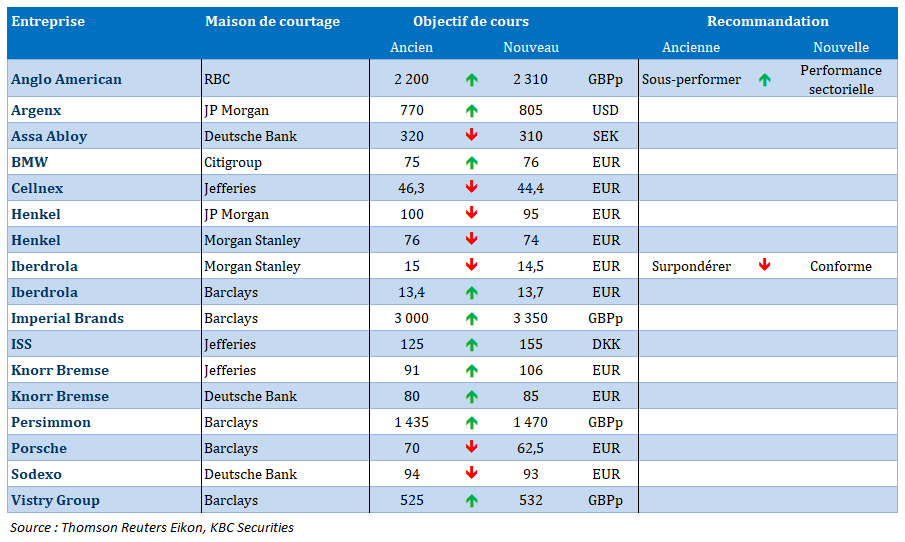 Dans le top 10 aujourd'hui : Ageas, Aperam, BNP Paribas, Lotus Bakeries, Umicore, KBC, Elia, Argen-x, ASML, Sequana Medical.