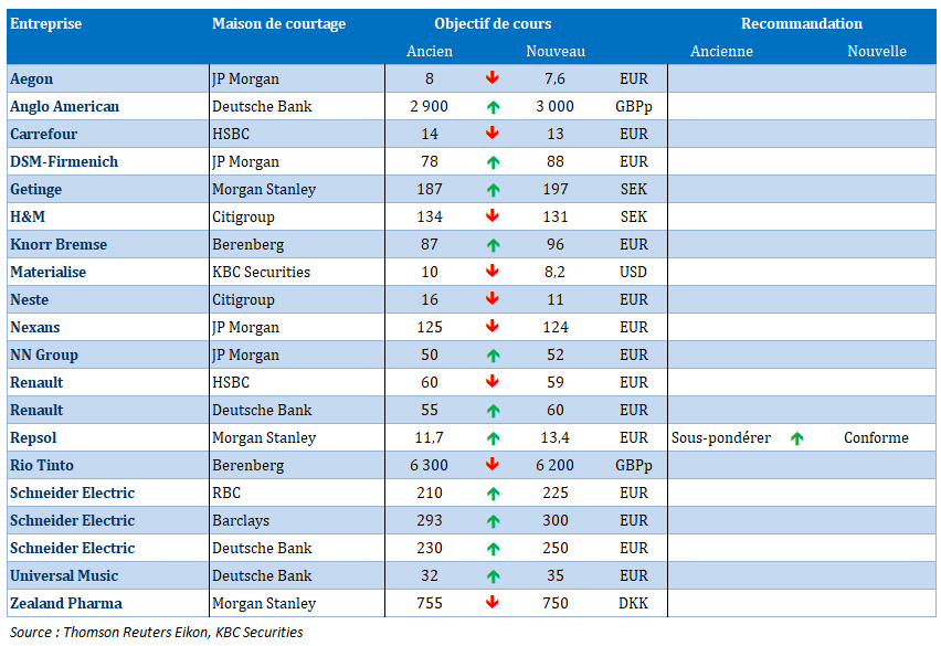 Source : Bernard Keppenne, Chief Economist - CBC Banque & Assurances