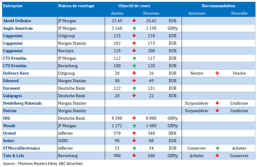 Dans le top 10 aujourd'hui : EVS, Ageas, KBC, Theon International, Sofina, D'Ieteren, Aedifica, Lotus Bakeries, Umicore, Melexis.