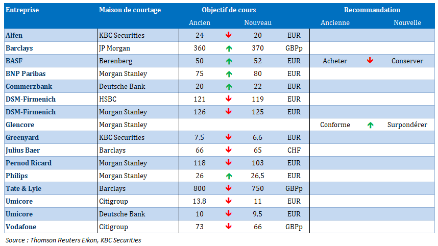 Source : Bernard Keppenne, Chief Economist - CBC Banque & Assurances