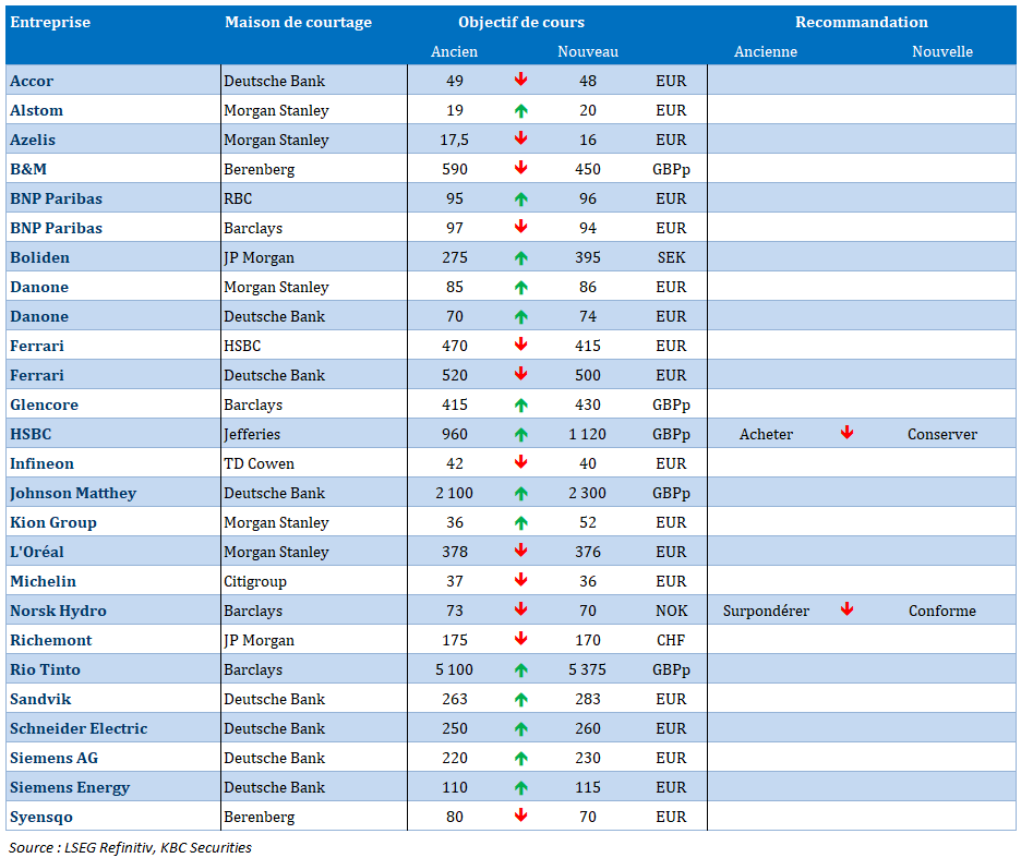 Source : Bernard Keppenne, Chief Economist - CBC Banque & Assurances