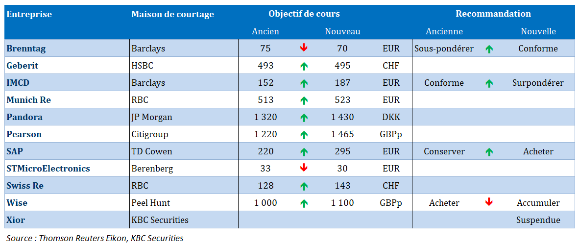 Dans le top 10 aujourd'hui : Barco, Syensqo, Ageas, Elia, D'Ieteren, AB InBev, Xior, ASML, ABN Amro, UCB.