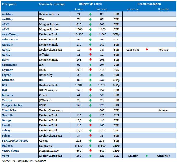 Dans le top 10 aujourd'hui : Lotus Bakeries, D'Ieteren, UCB, ASML, KBC, Solvay, AB InBev, Inventiva, Ageas, Cofinimmo.