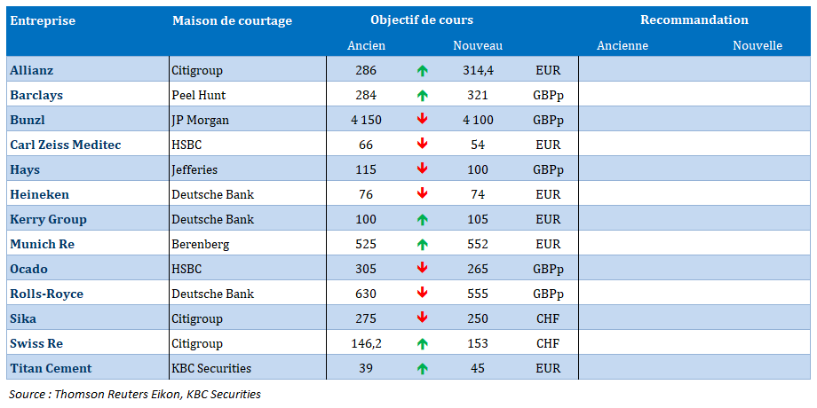Source : Bernard Keppenne, Chief Economist - CBC Banque & Assurances