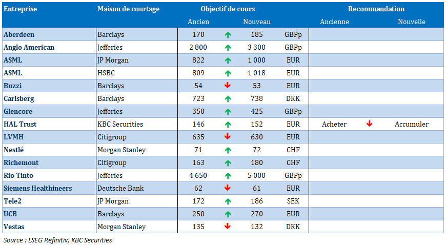 Source : Bernard Keppenne, Chief Economist - CBC Banque & Assurances