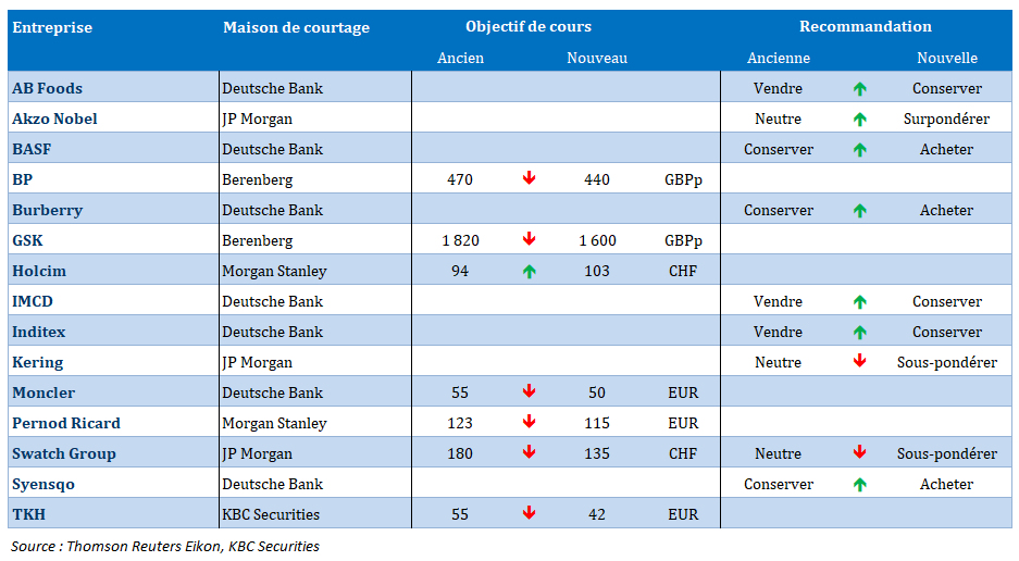 Source : Bernard Keppenne, Chief Economist - CBC Banque & Assurances