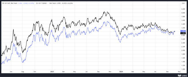 En attendant, le rendement de l’obligation française à 10 ans est passé au-dessus de celui de l’obligation espagnole à 10 ans, et on attend l’avis de Fitch ce soir sur le rating de la France.