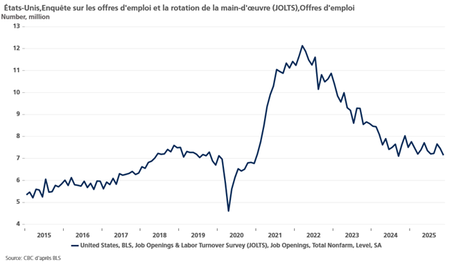 Le deuxième indicateur publié hier confirme cette diminution de la demande de main-d’œuvre, à savoir le rapport JOLTS, publié par le Bureau des statistiques du travail du département du Travail.