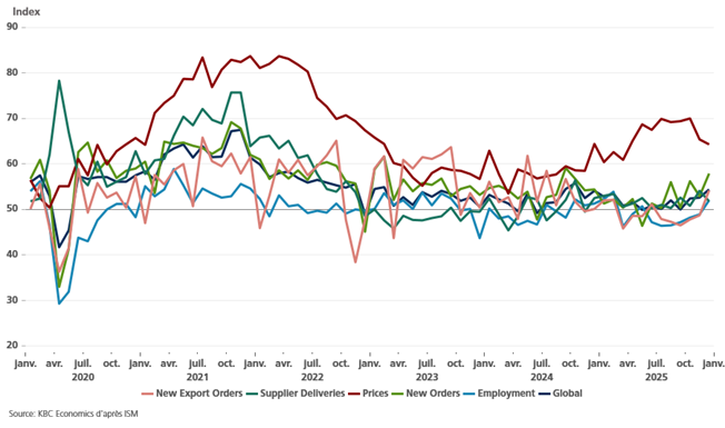 Ce n’est pas le seul sous-indice à être orienté à la hausse, celui des nouvelles commandes a augmenté à 57,9 le mois dernier, contre 52,9 en novembre.
