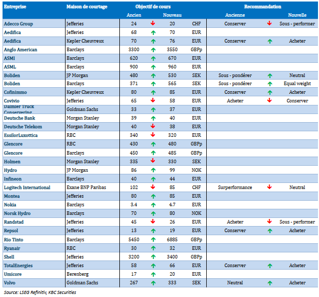 Dans le top 10 aujourd'hui : KBC Groep, Lotus, Azelis, ASML Holding, Aedifica, Groep Bruss. Lambert, Care Property Invest, Shell, CMB Tech et UCB.
