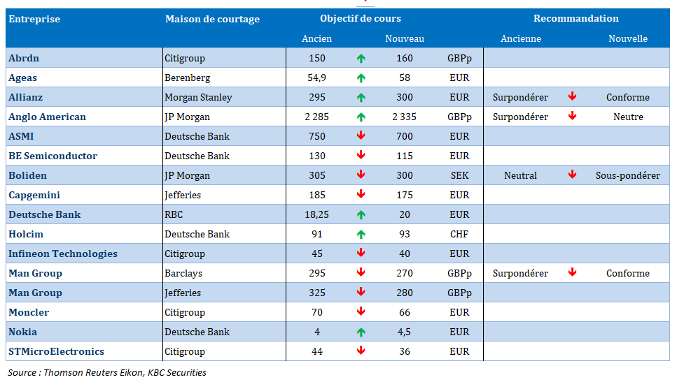 Source : Bernard Keppenne, Chief Economist - CBC Banque & Assurances