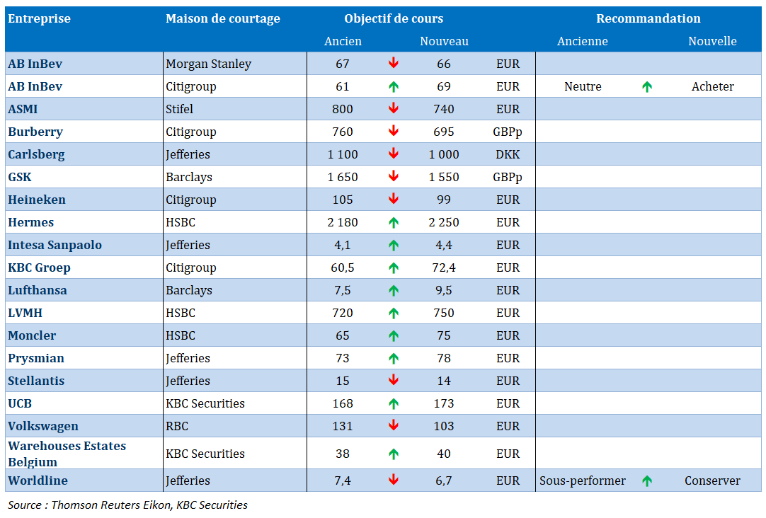 Source : Bernard Keppenne, Chief Economist - CBC Banque & Assurances