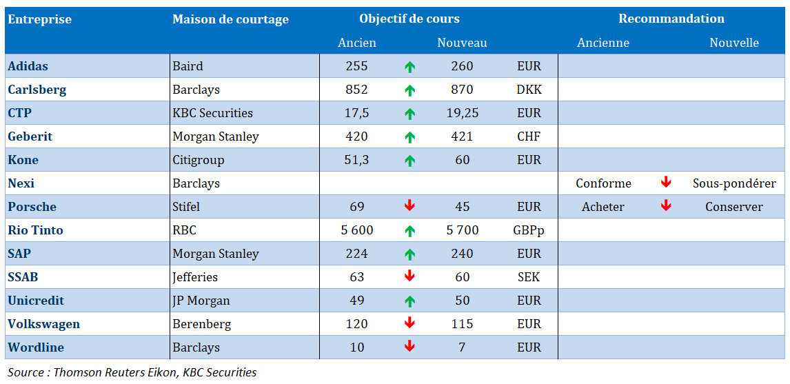Dans le top 10 aujourd'hui : Stellantis, Prosus, D'Ieteren, Sofina, LVMH, Aperam, Cofinimmo, AB Inbev, Ageas, KBC.