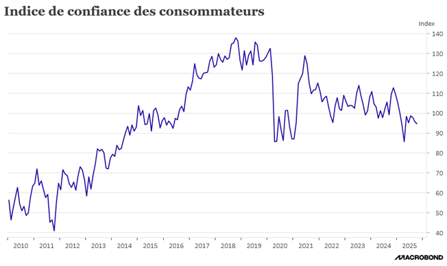 Le deuxième indice est la publication de l’indice de confiance des consommateurs américains qui est tombé à son plus bas niveau depuis six mois, en octobre, sur fond d’inquiétude quant à la disponibilité des emplois à court terme.