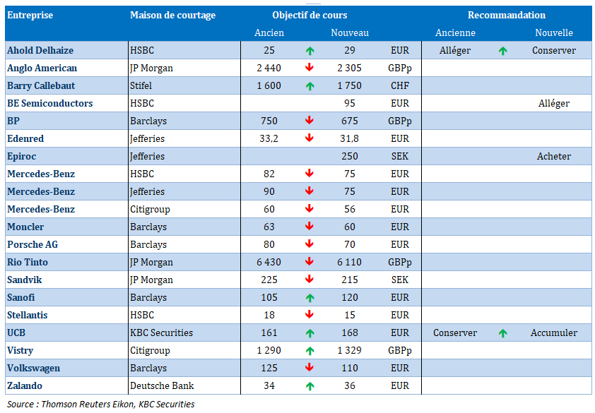 Dans le top 10 aujourd'hui : UCB, Financière de Tubize, KBC, D'Ieteren, Ageas, Deceuninck, Melexis, Umicore, LVMH, X-Fab.
