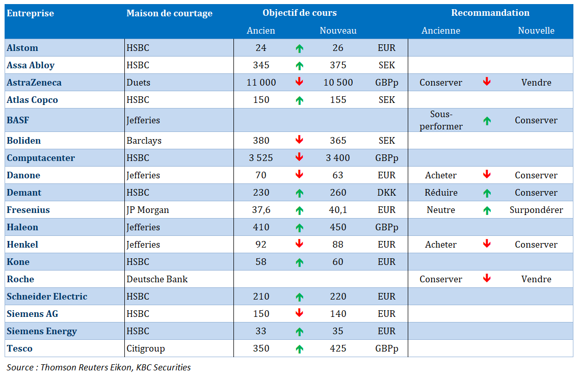 Source : Bernard Keppenne, Chief Economist - CBC Banque & Assurances