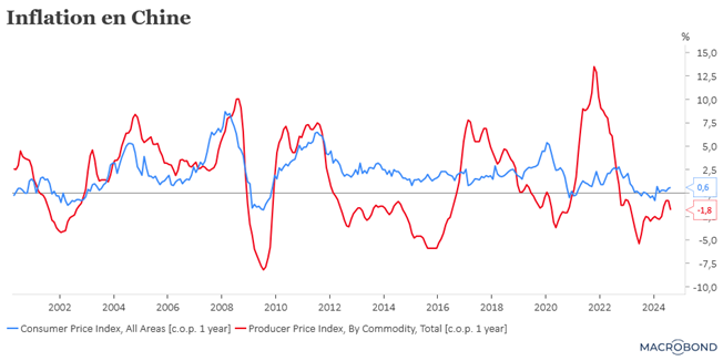 Plus interpellant encore, les prix à la production sont passés de -0,8 % en juillet à -1,8 % en août, ce qui reflète bien l’excédent de production qui oblige les producteurs à baisser leur prix pour essayer d’écouler leurs produits.
