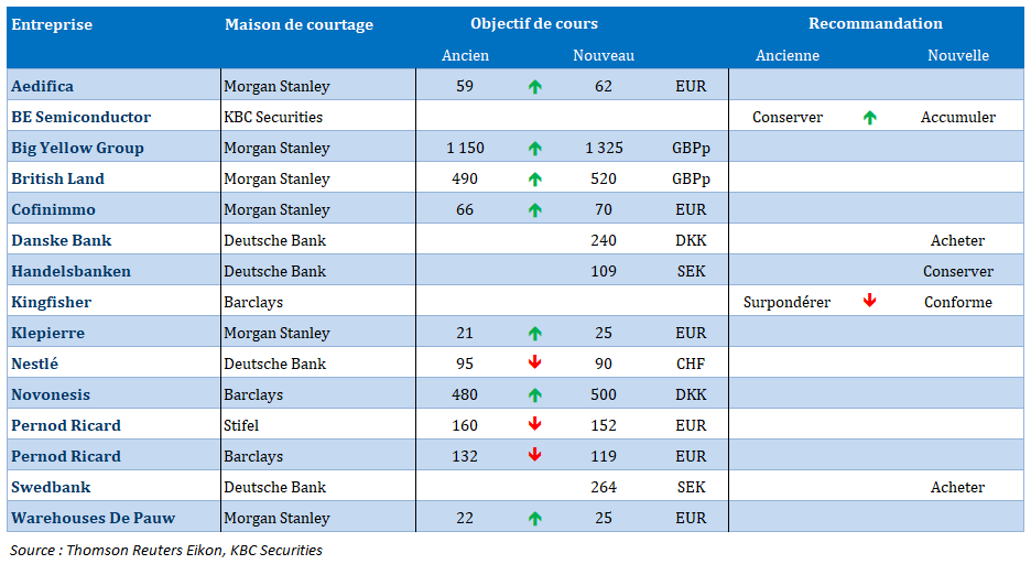 Source : Bernard Keppenne, Chief Economist - CBC Banque & Assurances