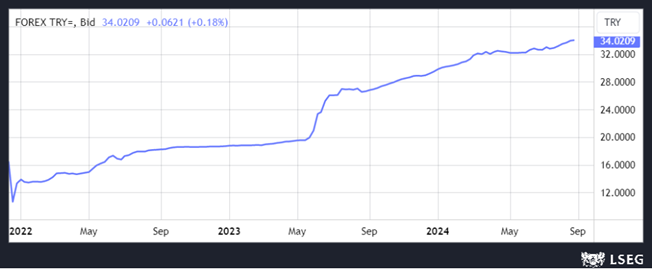 Et ne parlons pas de la livre turque qui affiche de nouveaux records à la baisse par rapport au dollar, alors que la Banque centrale a pourtant décidé de laisser ses taux inchangés. La conjonction d’une poursuite de la chute de la devise et de la hausse du prix du baril est une très mauvaise nouvelle, car cela augmente l’inflation importée et cela pourrait venir mettre à mal le scénario d’un recul de l’inflation fin de l’année.