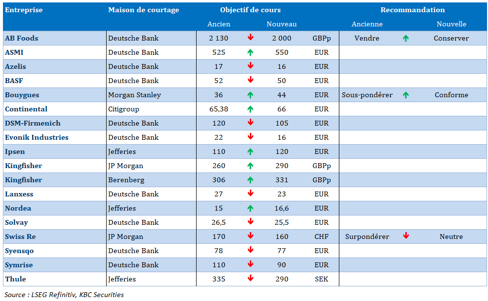 Source : Bernard Keppenne, Chief Economist - CBC Banque & Assurances