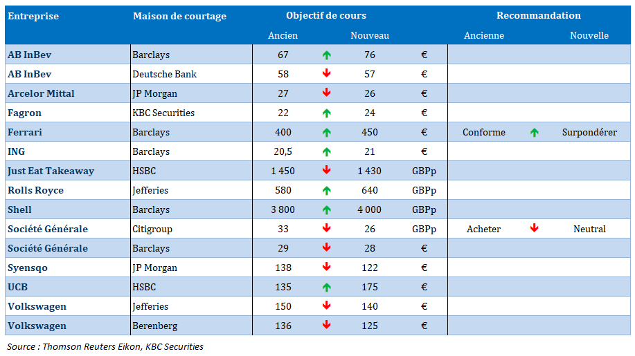 Dans le top 10 aujourd'hui : Syensqo - AB Inbev - ASML - UCB - KBC - Kinepolis - Groupe Bruxelles Lambert - ASMI - ING - STMicroelectronics