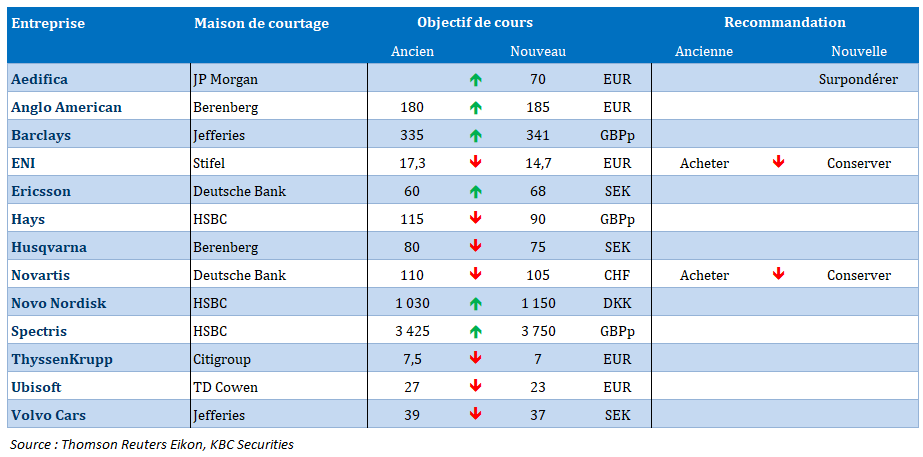 Source : Bernard Keppenne, Chief Economist - CBC Banque & Assurances